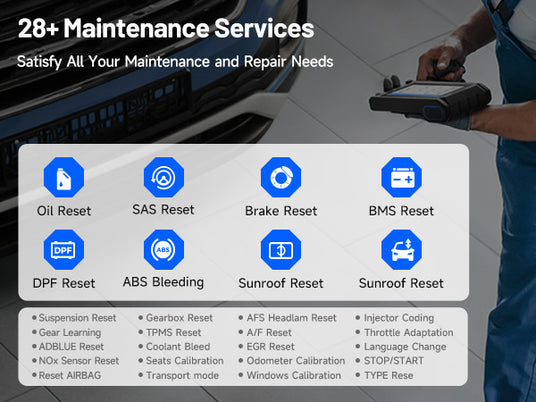 With over 28 essential maintenance functions, from service light resets to battery registrations, this tool ensures vehicles are kept in peak condition, enhancing both performance and longevity. It provides the confidence that comes with knowing your vehicle is well-maintained, offering peace of mind on every journey.