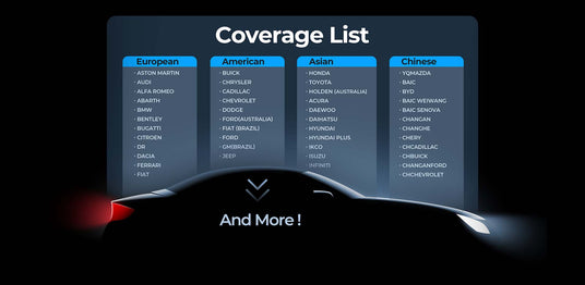 Easily determine if your device is compatible with your vehicle using the Vehicle Coverage list feature. Enter the Device Model, Vehicle Make, Vehicle Model, Year, and Function you would like to perform on your car, the Vehicle Coverage Lookup function can help you check whether the device is applicable to your vehicle, supporting several brands.