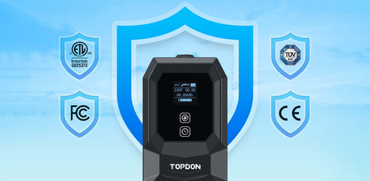 Diseñados para durar, los productos TOPDON cuentan con impresionantes clasificaciones IP e IK, como NEMA Tipo 4 para la versión estadounidense e IP65 para la versión europea. Con el PulseQ AC Portable, puede cargar con confianza, sabiendo que está construido para resistir el paso del tiempo.