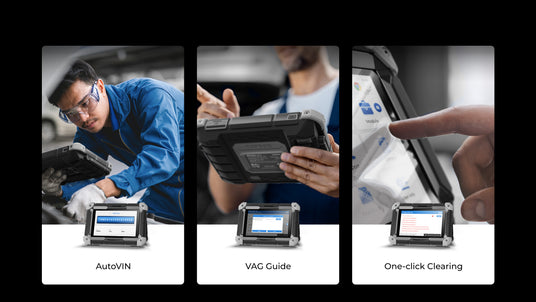 AutoVin reads vehicle information automatically, VAG guide function provides detailed step-by-step guidance eliminating unnecessary operations, and one-click codes reading and clearing for streamlined workflow.