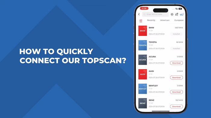 2) Check if the TopScan is securely plugged into the vehicle’s OBD-II port.